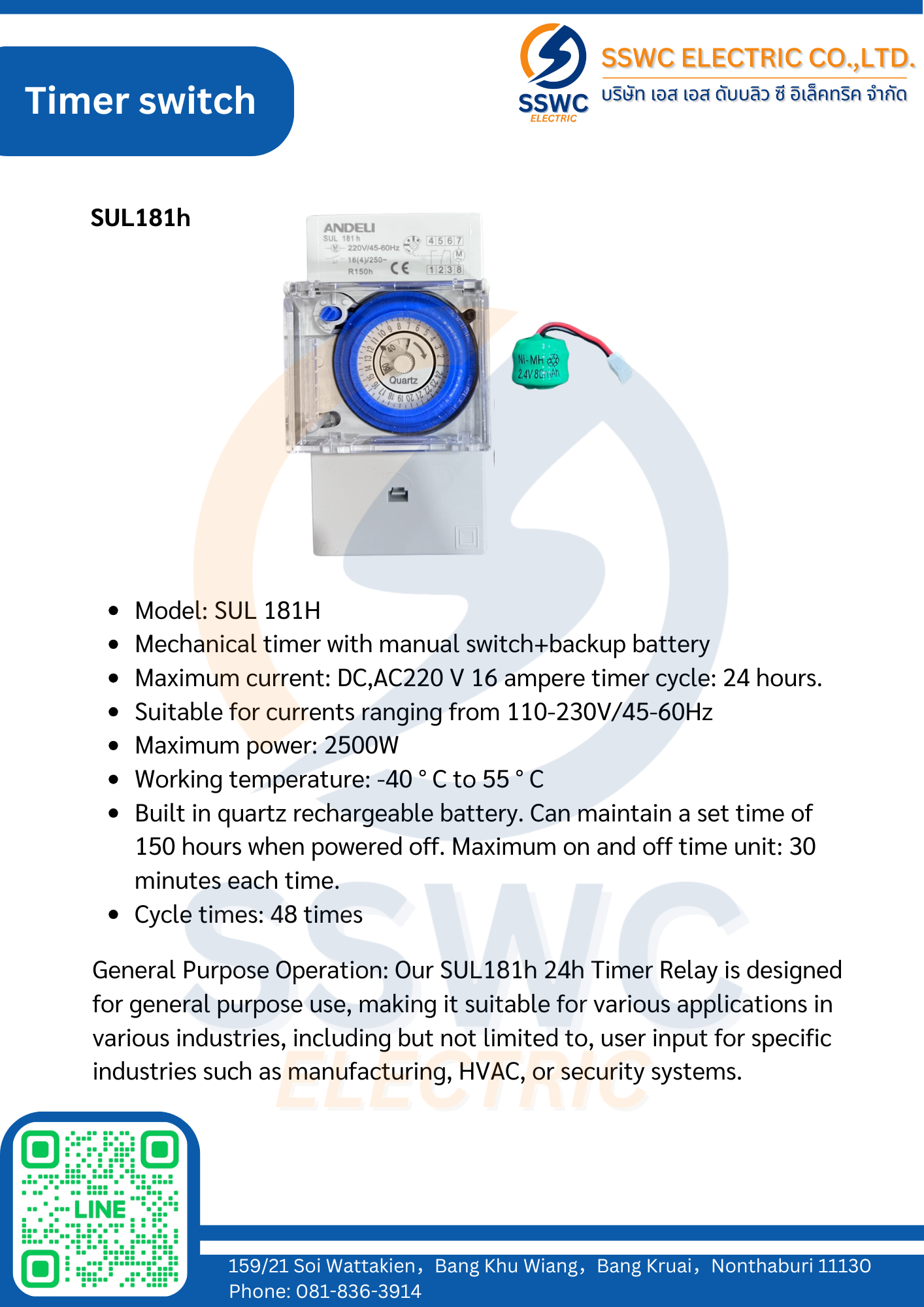 เครื่องตั้งเวลา Timer switch รุ่น SUL181h